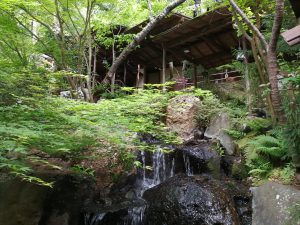 階段を上ると、手入れの行き届いた庭園が広がり、池には温泉の源泉が流れているそう。(もうこの時点で、癒やし確定。)