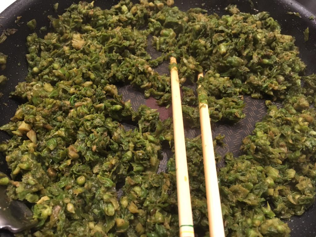 家で収穫したふきのとうを使って、母の味「ふき味噌」を伝授してもらった。