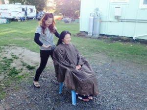散髪の場所は、キャンピング場
