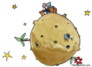 バラの花との愛と心の葛藤に疲れて一人星を出て旅に出てしまいます。地球の砂漠に降りて、飛行士と話をする王子様は感性豊かですが